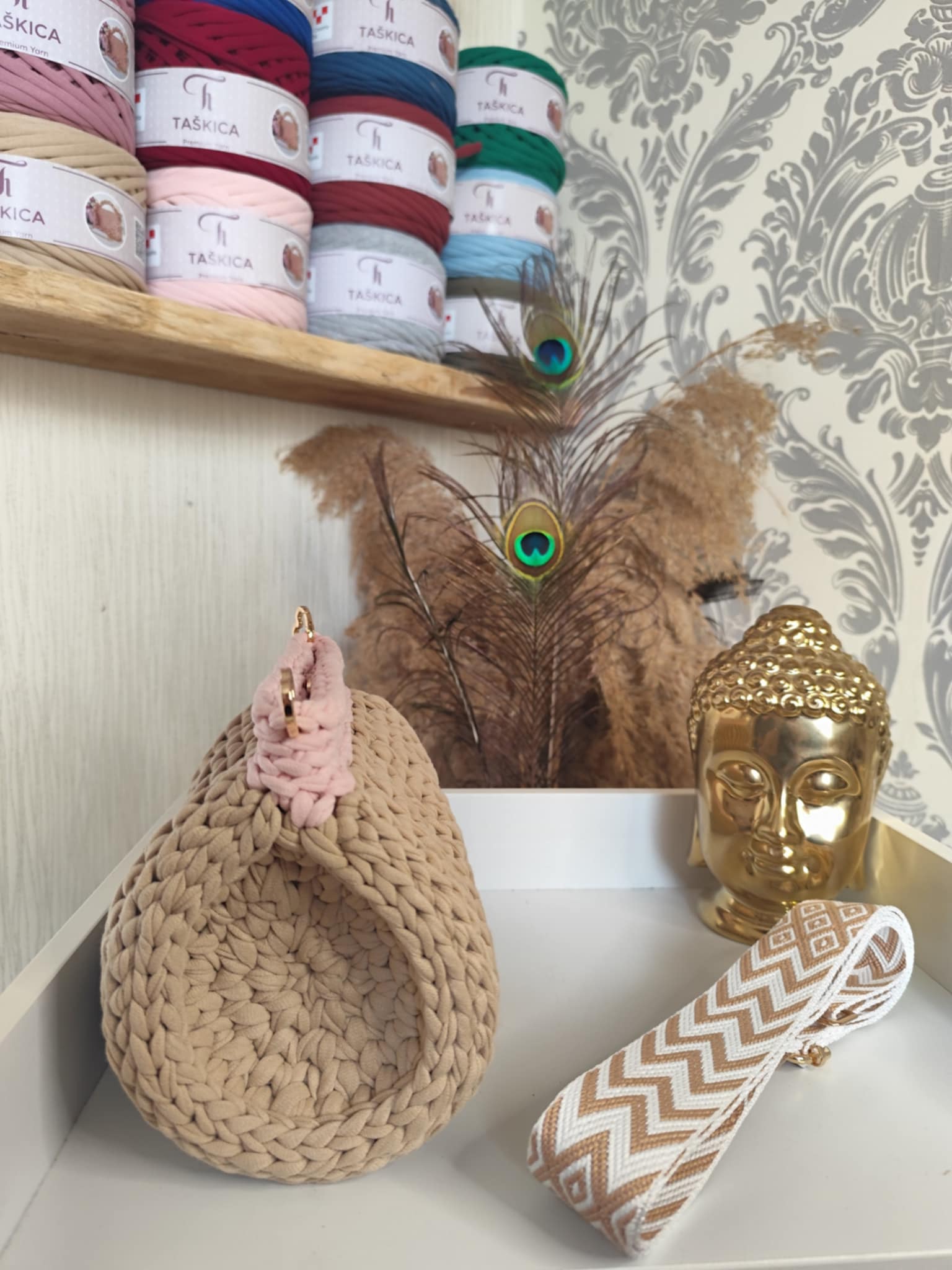 MARIA est crocheté avec un fil textile haut de gamme de la marque Taskica, reconnu pour sa douceur, sa régularité et sa tenue. Il offre un rendu visuel très soigné, avec un toucher agréable et une souplesse idéale pour des formes arrondies et équilibrées.