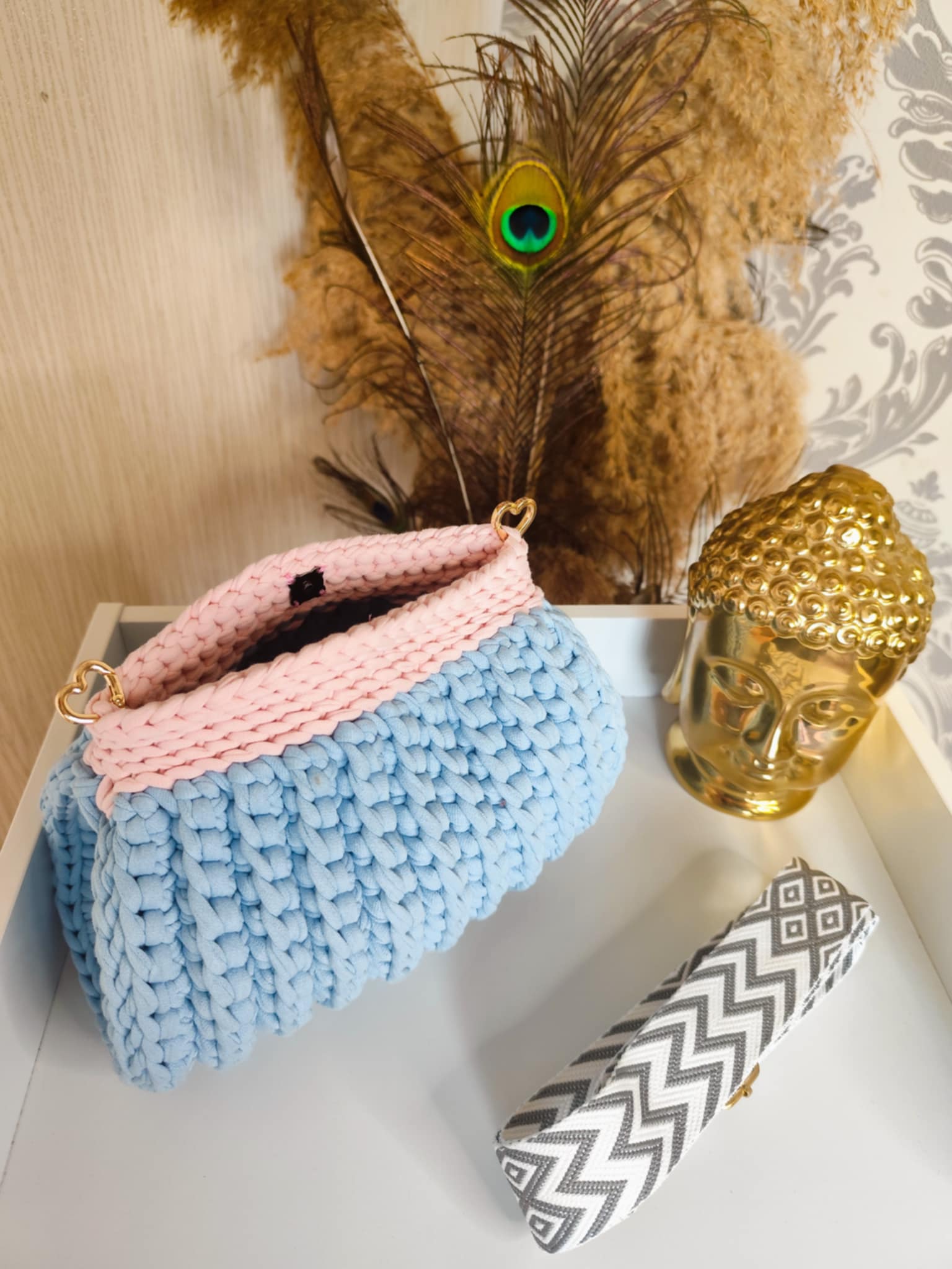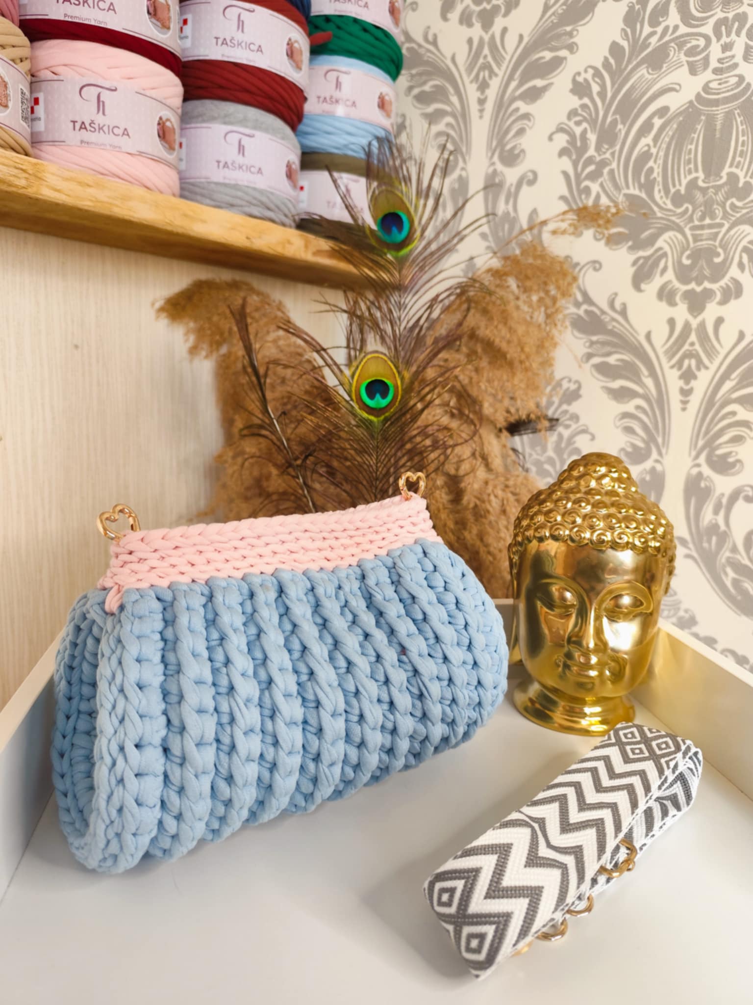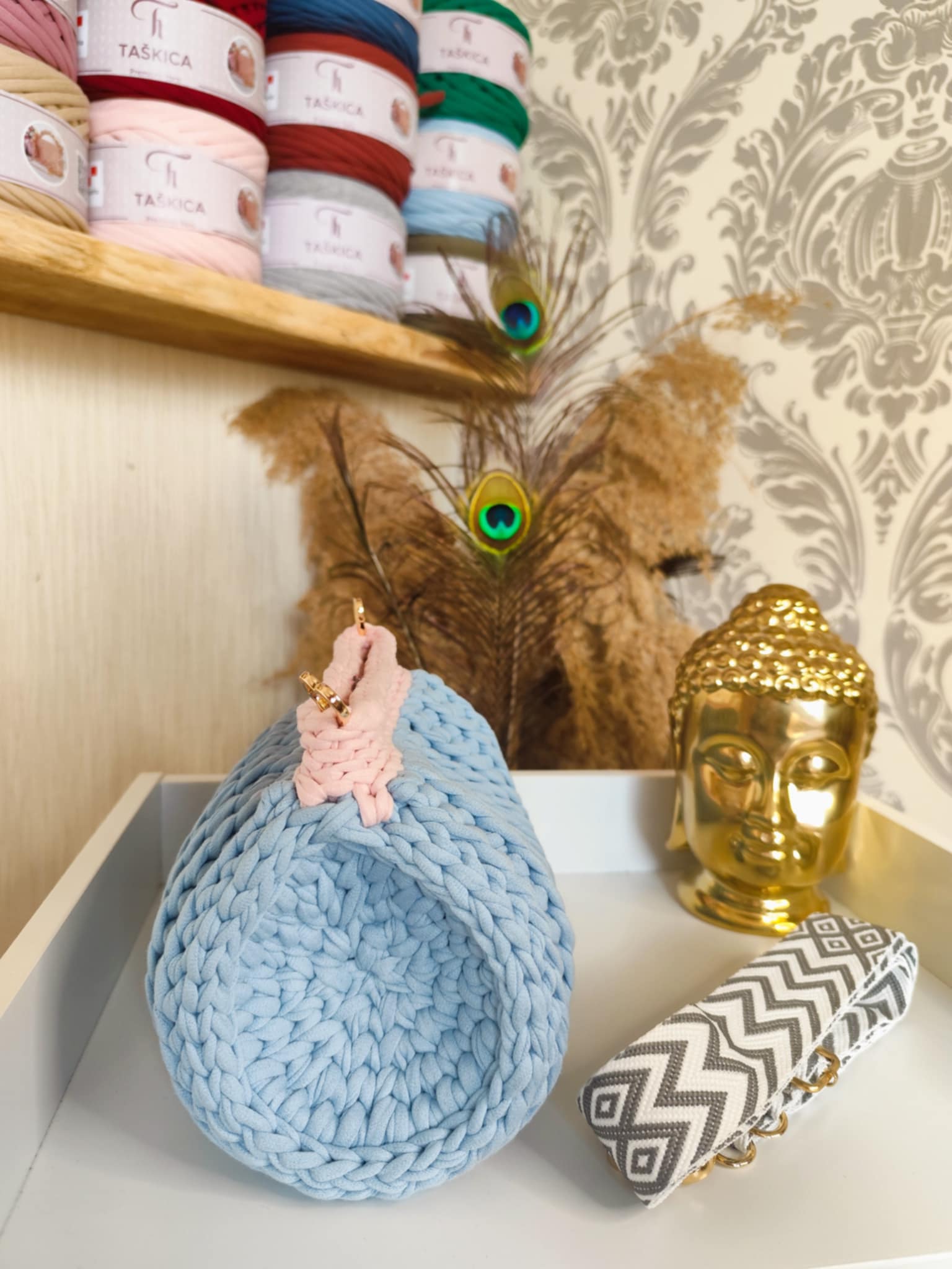 MARIA est crocheté avec un fil textile haut de gamme de la marque Taskica, reconnu pour sa douceur, sa régularité et sa tenue. Il offre un rendu visuel très soigné, avec un toucher agréable et une souplesse idéale pour des formes arrondies et équilibrées.
