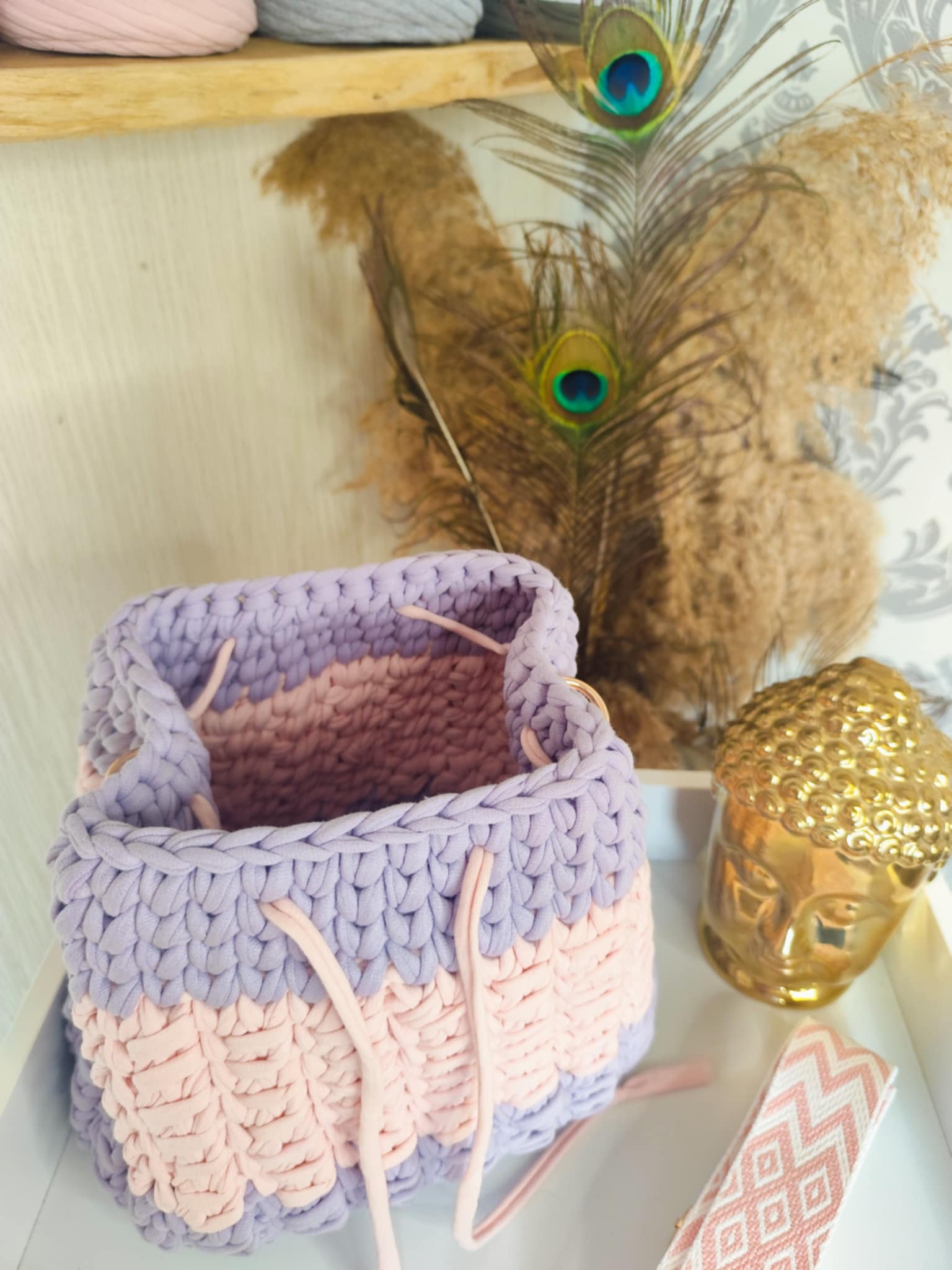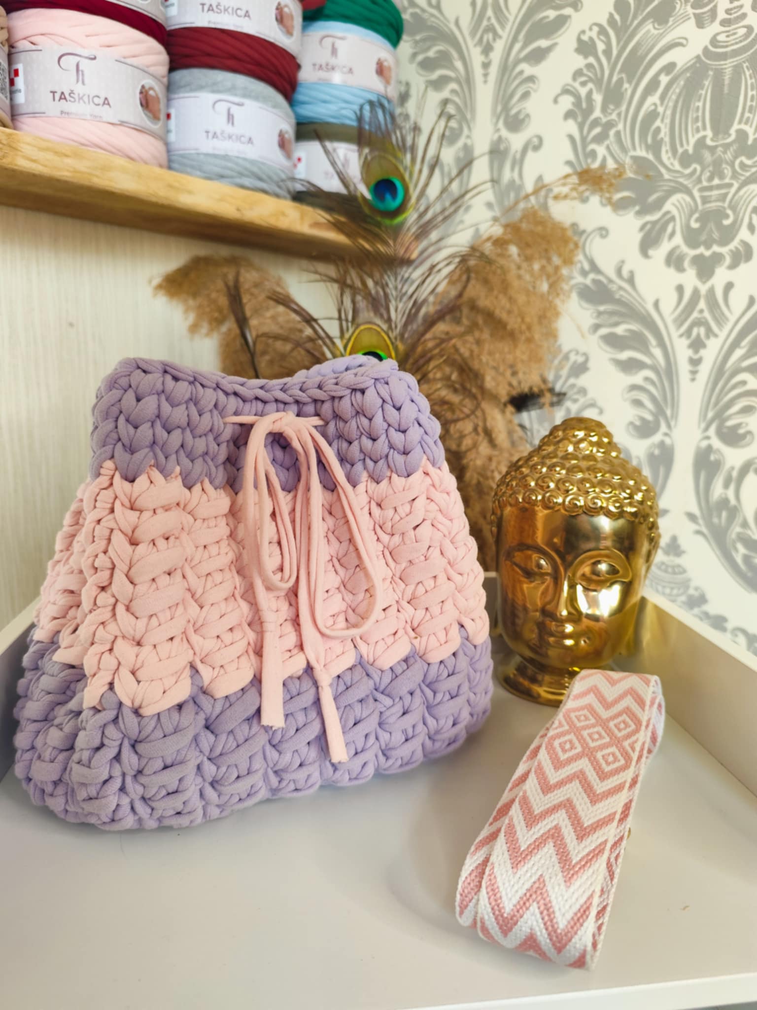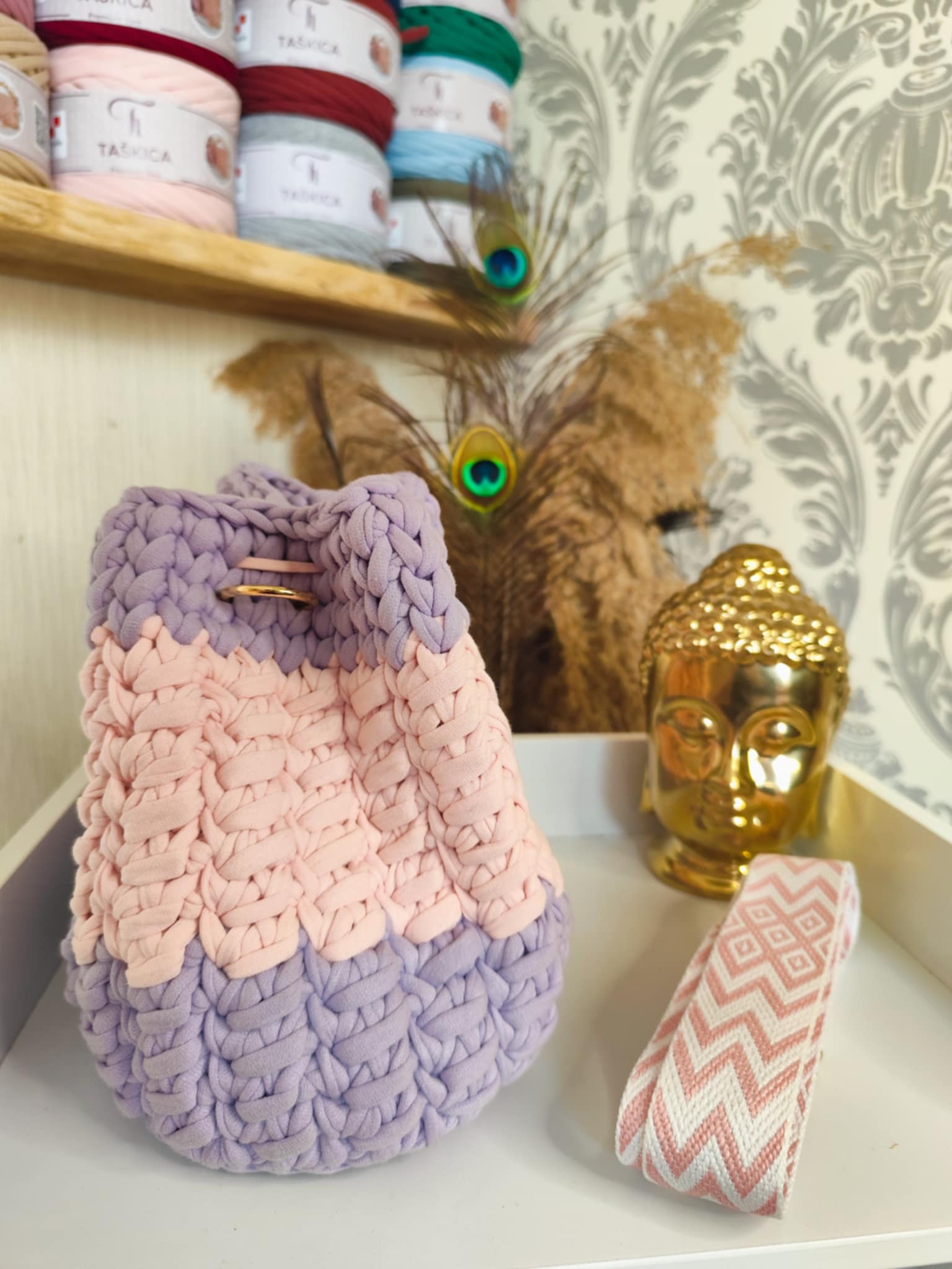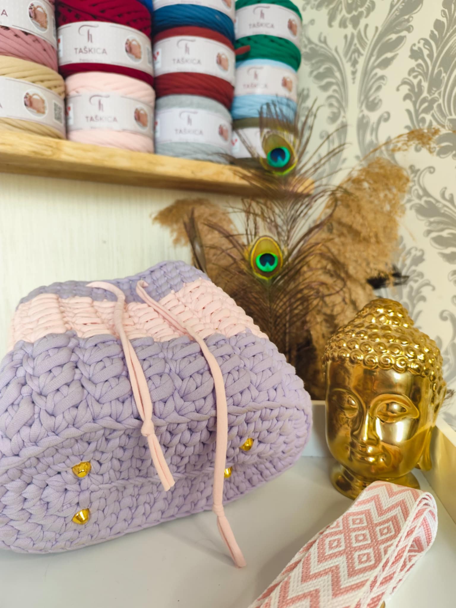 MELYA est crocheté avec un fil textile haut de gamme de la marque Taskica, reconnu pour sa douceur, sa régularité et sa tenue. Il offre un rendu visuel très soigné, avec un toucher agréable et une souplesse idéale pour des formes arrondies et équilibrées.